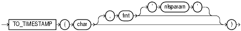 The optional fmt specifies the format of char. If you omit fmt, then char must be in the default format of the TIMESTAMP datatype. The optional 'nlsparam' has the same purpose in this function as in the TO_CHAR function for date conversion.