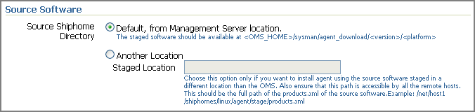 Select Default, from Management Server location if the Management Agent software is available in the default directory that exists within the OMS.