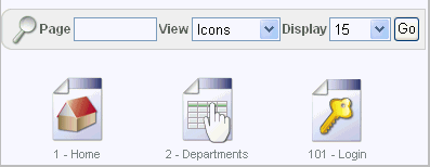 The two pages you created, Home and Departments, appear as icons by default.