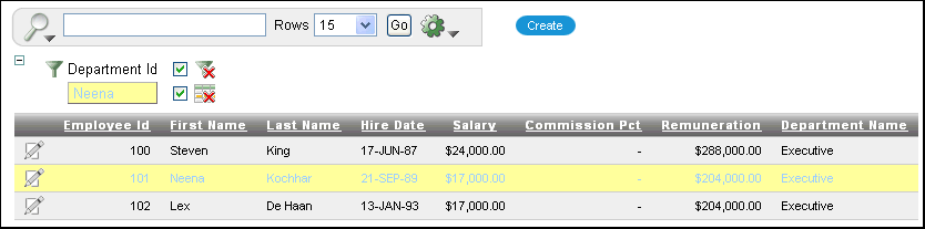 To remove the Department id = 90 filter, select the Remove Filter icon next to the filter.
