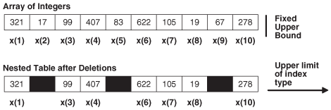 A dense collection has no gaps between elements—every element between the first and last element is defined and has a value (the value can be NULL unless the element has a NOT NULL constraint). A sparse collection has gaps between elements.