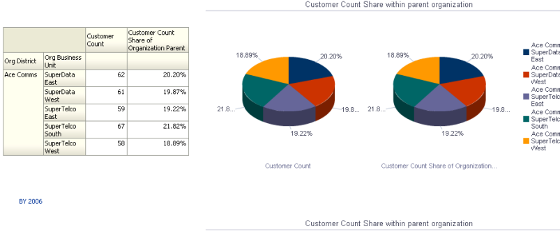 This report as shown in Figure 12-14 provides the month level number of customers for organization, products, and geographical boundaries. The future number of customers forecast for the next six months, or twelve months, can be forecast by Oracle OLAP forecast settings.