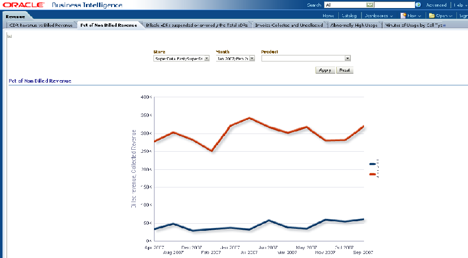 This report, as shown in Figure 12-77 analyzes the percent of Non billed Revenue for a product.