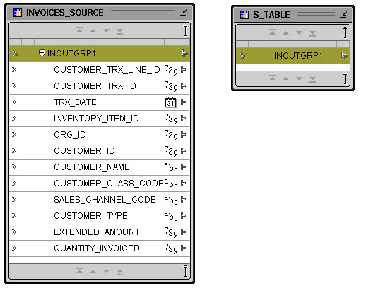 If you want to minimize the operator, click the arrow in the upper right corner and the Mapping Editor displays the operator as an icon on the canvas.
