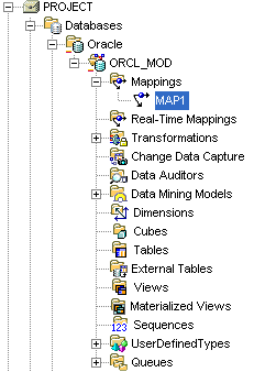 Go to the Mappings node in the Projects Navigator. This node is located under a warehouse target module, under the Databases folder, under the Oracle folder.