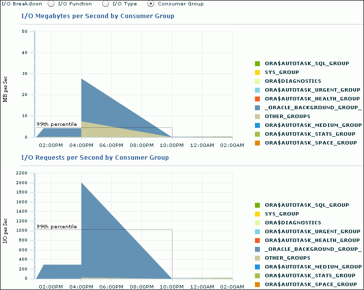 See "Monitoring Instance Activity" for a description of the Throughput, I/O, Parallel Execution, and Services charts.