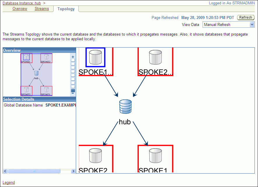 Click the Legend link for more information about the Oracle Streams topology.