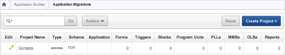 Oracle Application Express Application Builder User's Guide to learn more about editing application attributes, adding pages, deploying your application, and so on.When you delete a migration project, you delete only the metadata associated with the migration project. Deleting a migration project does not delete or impact applications you have generated from the project or any objects, such as tables or views, in the schemas associated with your workspaces.