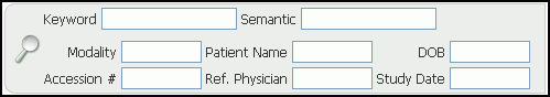 Semantic searches enable searching for DICOM images based on semantic relationships, which are loaded into the database during the installation of the sample application. These searches require a semantically related match between the text you enter in the Semantic field and the text contained in any attribute of the DICOM metadata.