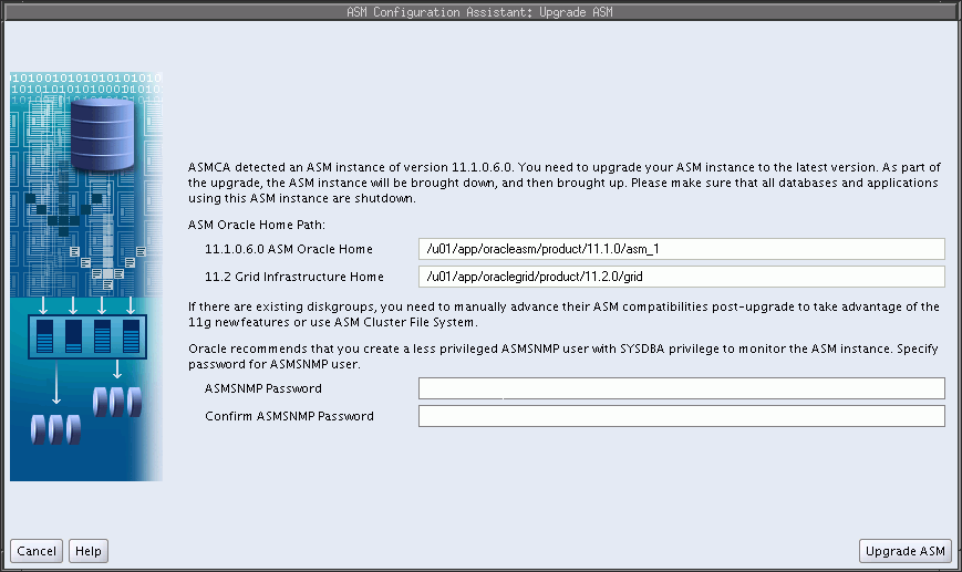 The procedure described in this section upgrades the Oracle ASM instance only. Oracle Database, and Oracle Enterprise Manager, will not have the latest features. To upgrade Oracle Database, see Oracle Database Upgrade Guide.