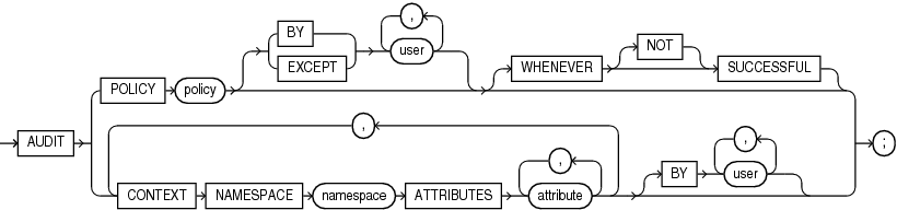 This section describes the AUDIT statement for unified auditing. This type of auditing is new beginning with Oracle Database 12c and provides a full set of enhanced auditing features. Refer to Oracle Database Security Guide for more information on unified auditing.