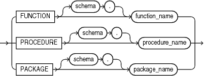 Specify the program unit from which the role is to be revoked. You can specify a PL/SQL function, procedure, or package. If you do not specify schema, then Oracle Database assumes the function, procedure, or package is in your own schema.