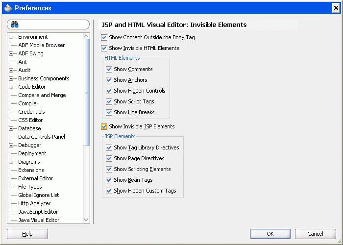 If the login.jsp page is not open in the Visual Editor, double-click it in the Application Navigator to open it, and check that the Design tab is selected.
