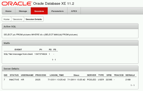 On Linux, click the Application menu (on Gnome) or the K menu (on KDE), then point to Oracle Database 12c, and then Go To Database Administration Page. Navigate to the Sessions page and login as the SYSTEM user. This shows