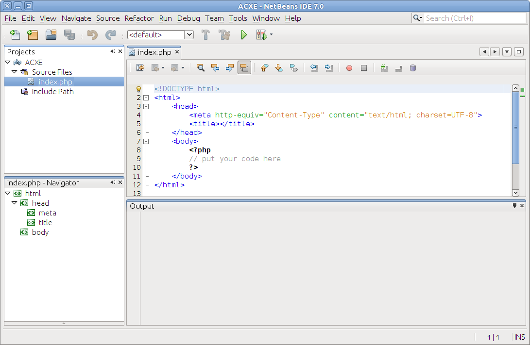The project will be created and an index.php file will be set to the default NetBeans template.