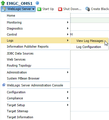 4. From the WebLogic Server menu, select Logs, then View Log Messages.