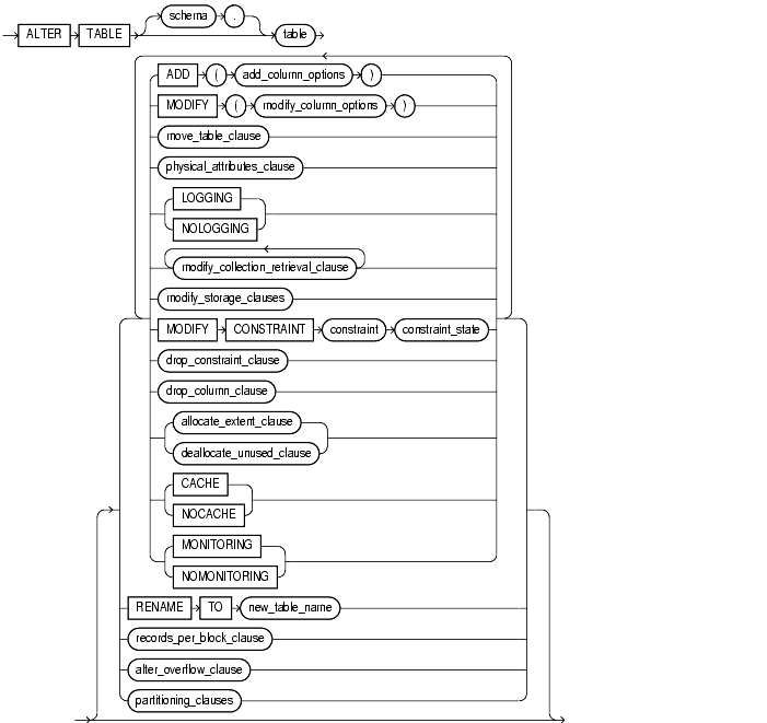 Use the ALTER TABLE statement to alter the definition of a nonpartitioned table, a partitioned table, a table partition, or a table subpartition.