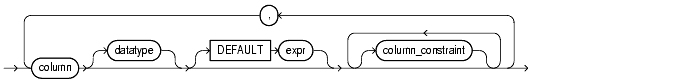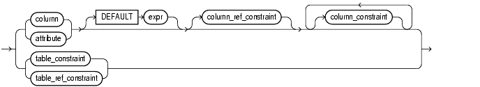 column_constraint, table_constraint, column_ref_constraint, table_ref_constraint, constraint_state: See the constraint_clause.