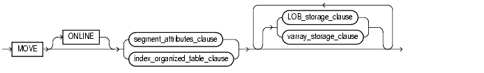 MOVE, it must be the first clause. For an index-organized table, the only clauses outside this clause that are allowed are the physical_attribute_clause and the parallel_clause. For heap-organized tables, you can specify those two clauses and the LOB_storage_clauses.