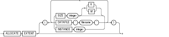 Because this statement omits the DATAFILE parameter, Oracle allocates the extent in one of the datafiles belonging to the tablespace containing the table.