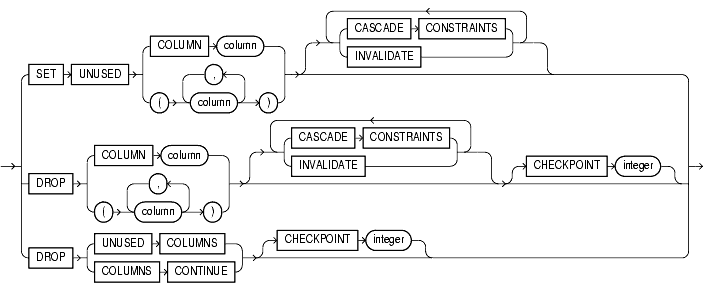 ALTER TABLE t1 DROP (pk, fk, c1);