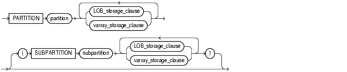 The partition_storage_clause lets you specify a separate LOB_storage_clause or varray_storage_clause for each partition. You must specify the partitions in the order of partition position.