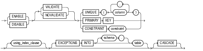 To enable a UNIQUE or PRIMARY KEY constraint, you must have the privileges necessary to create an index on the table. You need these privileges because Oracle creates an index on the columns of the unique or primary key in the schema containing the table.