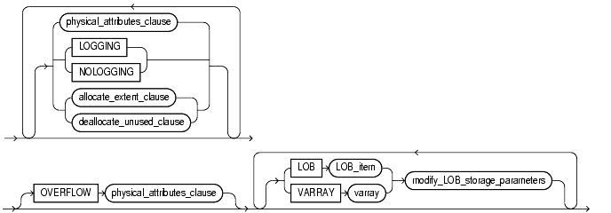 physical_attribute_clause, nested_table_storage_clause, parallel_clause, allocate_extent_clause, deallocate_unused_clause, or any of the index_organized_table clauses