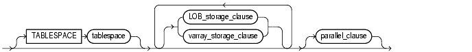 Restriction: You cannot specify the TABLESPACE clause of LOB_parameters as part of this clause. The LOB tablespace for a varray defaults to the containing table's tablespace.