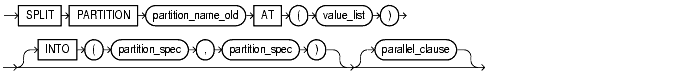 ALTER TABLE parts SPLIT PARTITION depot4 AT ( '40-001' ) INTO ( PARTITION depot4 TABLESPACE ts009 STORAGE (MINEXTENTS 2), PARTITION depot9 TABLESPACE ts010 ) PARALLEL (10);